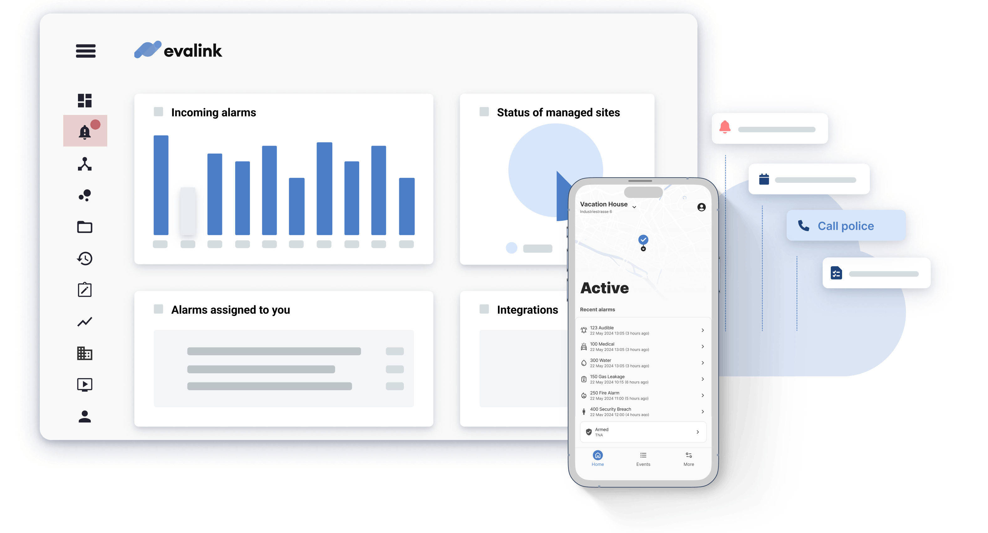 Your mission: deliver security and service without compromise. evalink unifies alarms, video, and automation so your team acts fast, proactive, and with full context.
